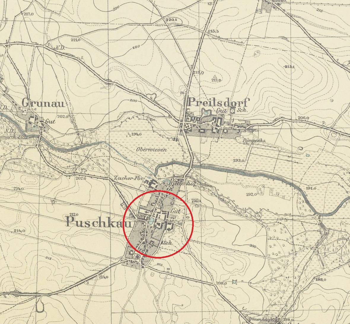 - 1576 – Caspar Kalckreuter zu Puschke: 9 kmieci, 14 łanów; George Kalckreuter: 10 kmieci, 12 łanów, 6 prętów (Treblin 1908, s. 121)