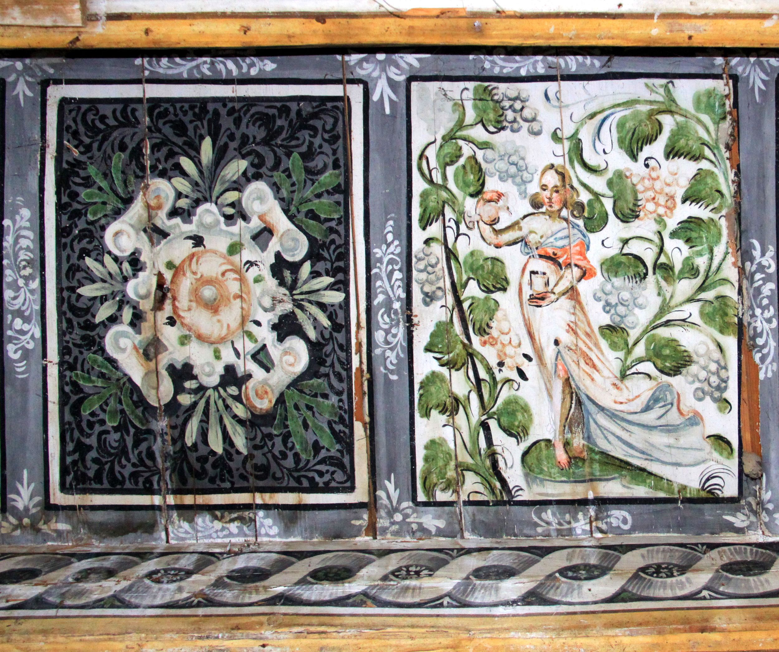 Wśród malowideł ściennych w świetlicy skrzydła północno-wschodniego znajduje się przedstawienie wzorowane na grafice Jana I Sedelera „Ludzkość w oczekiwaniu końca świata” z 1582 roku, co dodatkowo potwierdza datowanie tej części założenia na koniec XVI lub początek XVII wieku (Wójcik 2013).