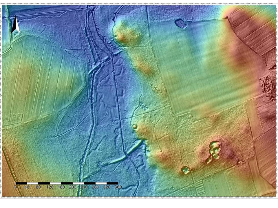 PUSZYNA, st. 7, cieniowany model reliefu (315˚ i 75˚), svf, (oprac. M. Legut-Pintal, Katalog Zamków i Dworów Obronnych Śląska [https://zamki.pwr.edu.pl/]. Licencja: CC BY-NC 4.0 [https://creativecommons.org/licenses/by-nc/4.0/])