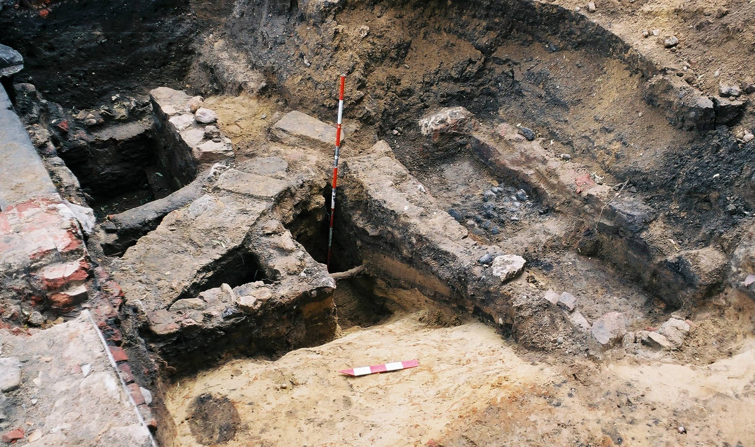 Jeszcze w XIII w. pierwszy dwór Wierzbnów został przedzielony fosą, oddzielającą część mieszkalną od kościoła i karczmy. Fosa miała szerokość ok. 3 m i głębokość ok. 1 m. Obiekt ten okresowo wypełniał się wodą, a na jego dnie osadziło się kilka poziomów nawarstwień, które stopniowo go spłycały, aż do niemal całkowitego wypełnienia. W wypełnisku odkryto materiał archeologiczny wskazujący na funkcjonowanie fosy od schyłku XIII do około połowy XIV w. (Boguszewicz 2005, s. 292–296). Wówczas została ona zasypana, a na zniwelowanym terenie wzniesiono budynek o konstrukcji ryglowej i trudnym do odczytania planie. Nikłe ślady belek przyciesiowych nie pozwalają na jego rekonstrukcję. W jego wnętrzu odkryto relikty dwóch urządzeń grzewczych typu hypocaustum, związanych z dwiema kolejnymi fazami użytkowania obiektu (druga połowa XIV i pierwsza połowa XV w.). Ze względu na „prowizoryczny” charakter konstrukcji, w których mieściły się urządzenia grzewcze, postawiono tezę, że obiekt ten mógł pełnić funkcję łaźni.