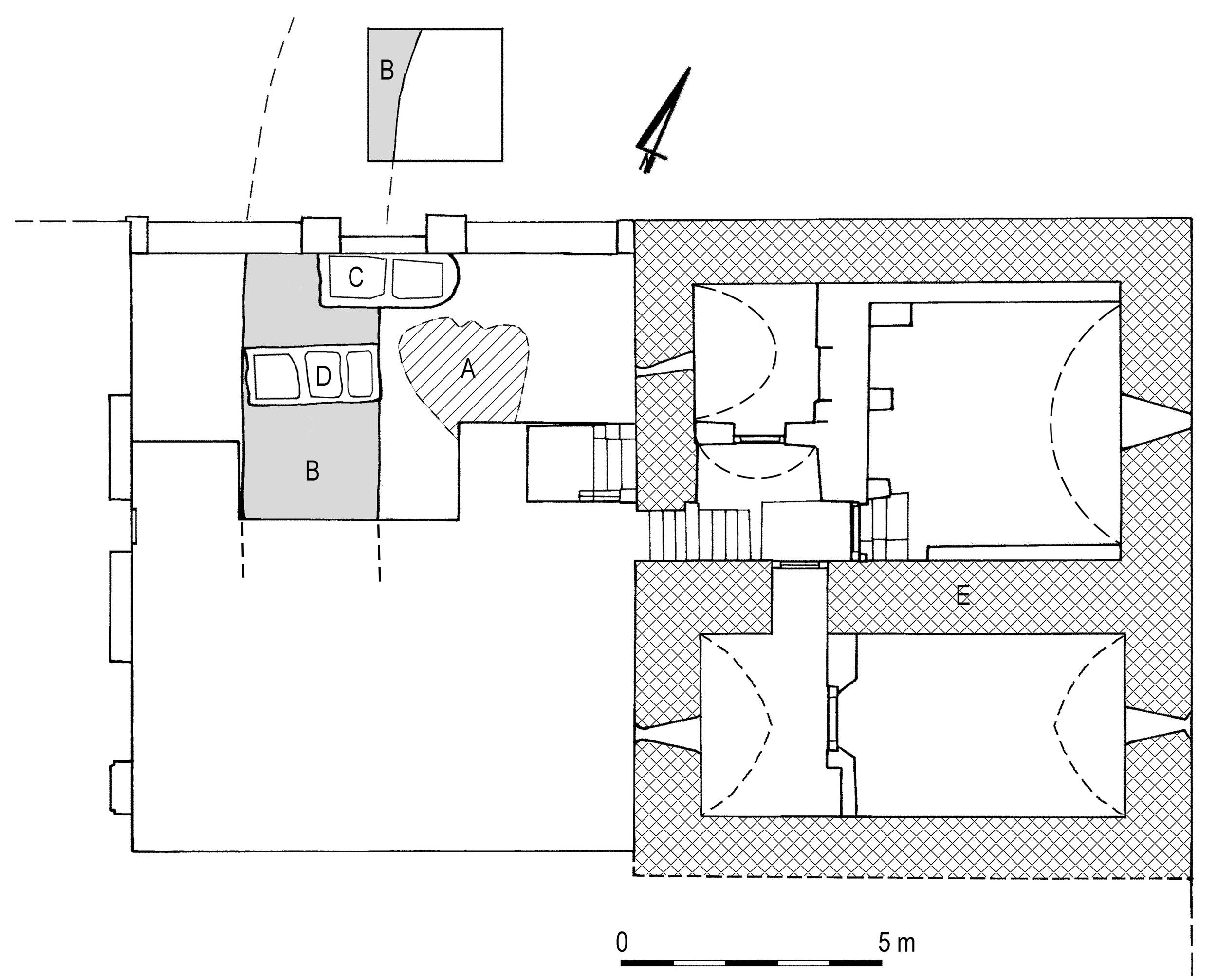 W tym okresie dokonano przebudowy wieży polegającej na wymianie stropów na sklepienia kolebkowe oraz wprowadzeniu większych otworów okiennych w kamiennych obramieniach. Sklepienia osadzono na starszych murach, prawdopodobnie w wykutych bruzdach. W niektórych miejscach wysklepki przesłoniły częściowo starsze otwory piwniczne. Sklepienia wykonano na szalunkach z klinowych desek, których ślady zachowały się w tynku. Posadzkę piwnic wybrukowano kamieniami polnymi („kocie łby”). W zasypach pach sklepiennych odkryto halerz wrocławski z 1422 r. oraz halerz nyski z 1430 r. (informacja od Andrzeja Sośnierza, prezesa Fundacji „Zamek Chudów”).