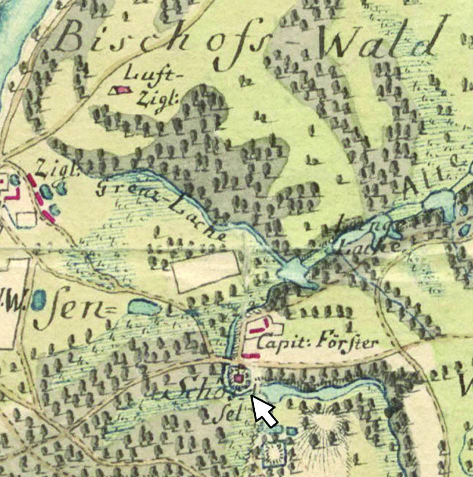 WROCŁAW-SĘPOLNO, plan dworu an kopcu wg mapy okolic Wrocławia z 1790 r. (SBB, Preußischer Kulturbesitz, sygn. N 16389/1)
