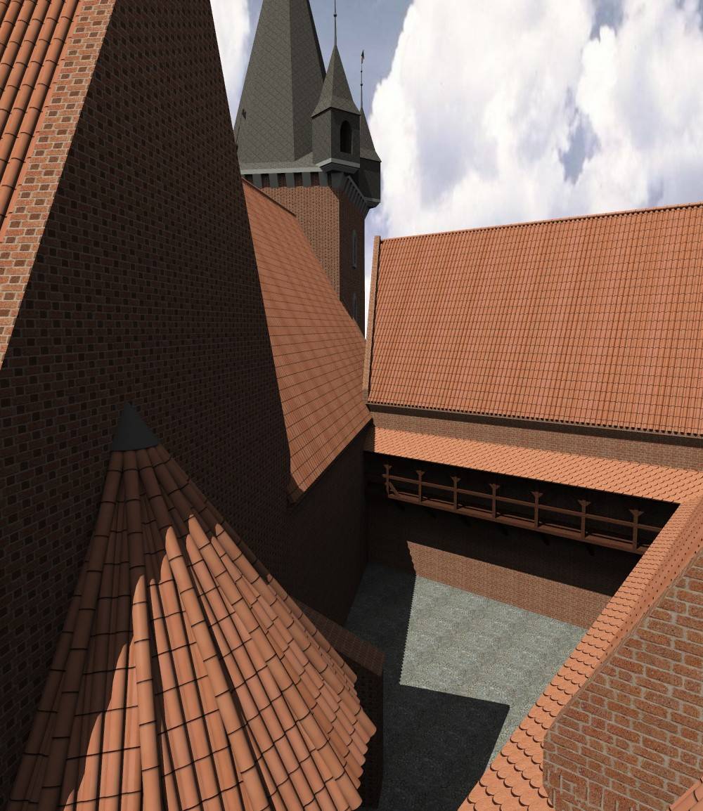 - 1253 r. – wzm. pars curiae domina matris nostre usque ad turrem lateritam destructam; (BUb. 17).